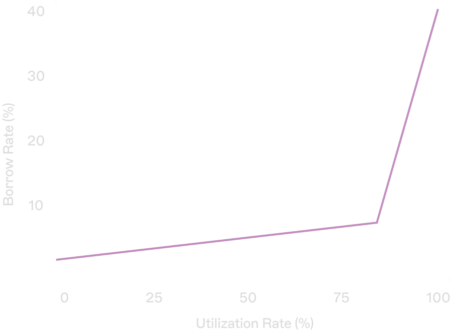 Borrow rates stay low at low utilization, then rise sharply as utilization increase — driving repayment, new supply, and restoring equilibrium.