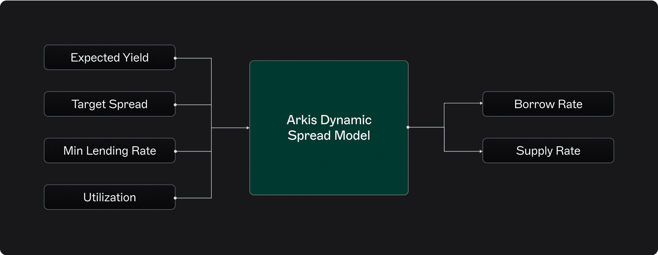 Traditional utilization-based models make borrowing costs noisy and unpredictable, undermining institutional strategies. Arkis solves this with our Dynamic Spread Model, anchoring rates to collateral yields and target spreads for predictable lending markets.